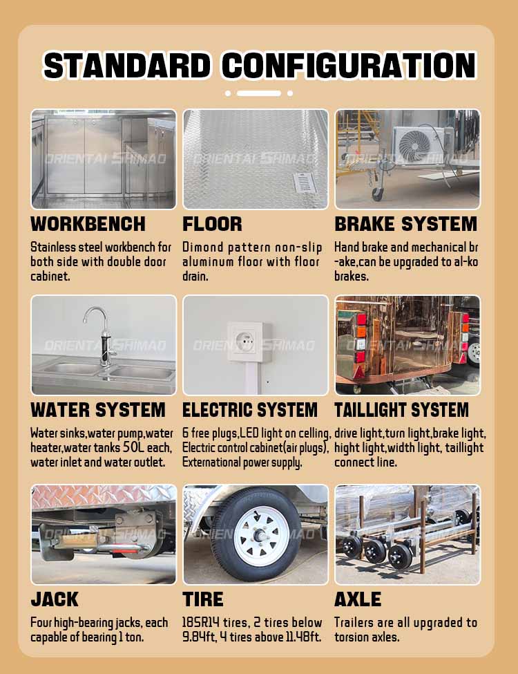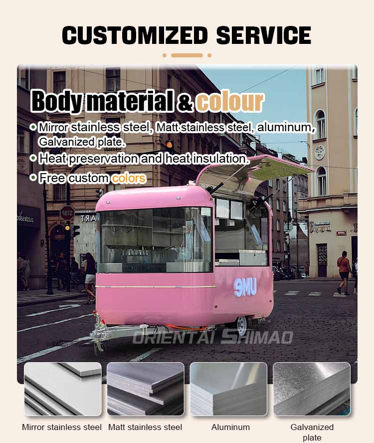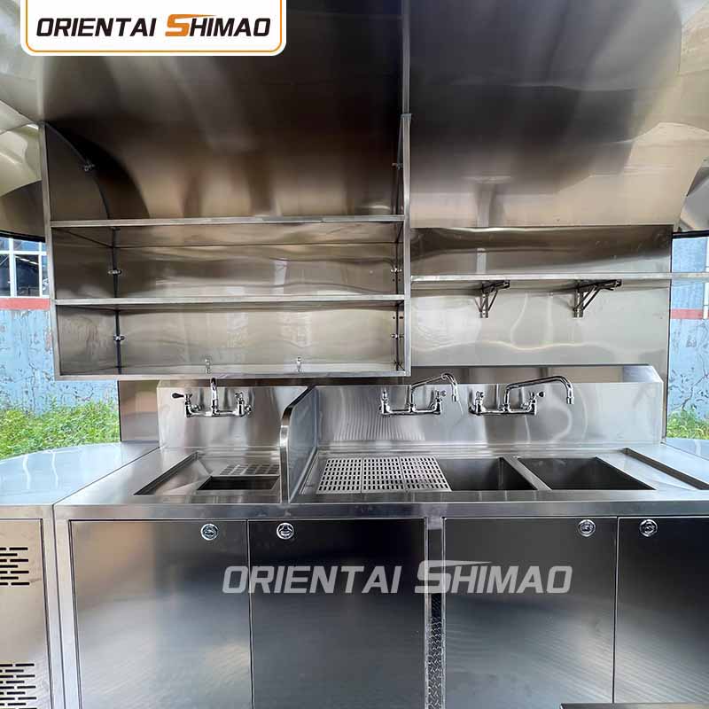 For the main material, we chose high-quality 304 stainless steel, which is known for its excellent corrosion resistance and excellent durability, and can maintain stable performance in a variety of environmental conditions, ensuring that our Airstream Food Trailer products can maintain their excellent quality and functionality even in the long term and face a variety of challenges. 304 stainless steel's excellent resistance to corrosion, so that the Truck is not easy to be affected by oxidation or rust, which greatly extends its service life. The excellent corrosion resistance of 304 stainless steel makes the Truck less susceptible to oxidation or rust, greatly extending their service life.