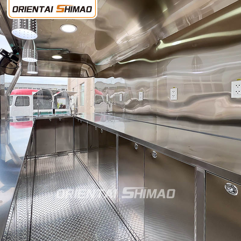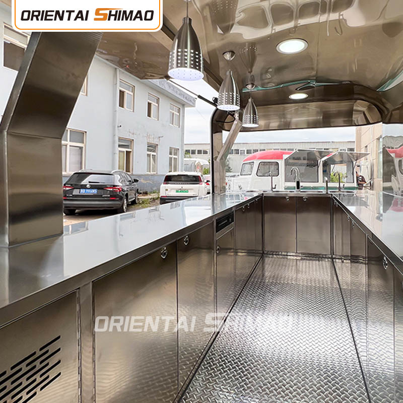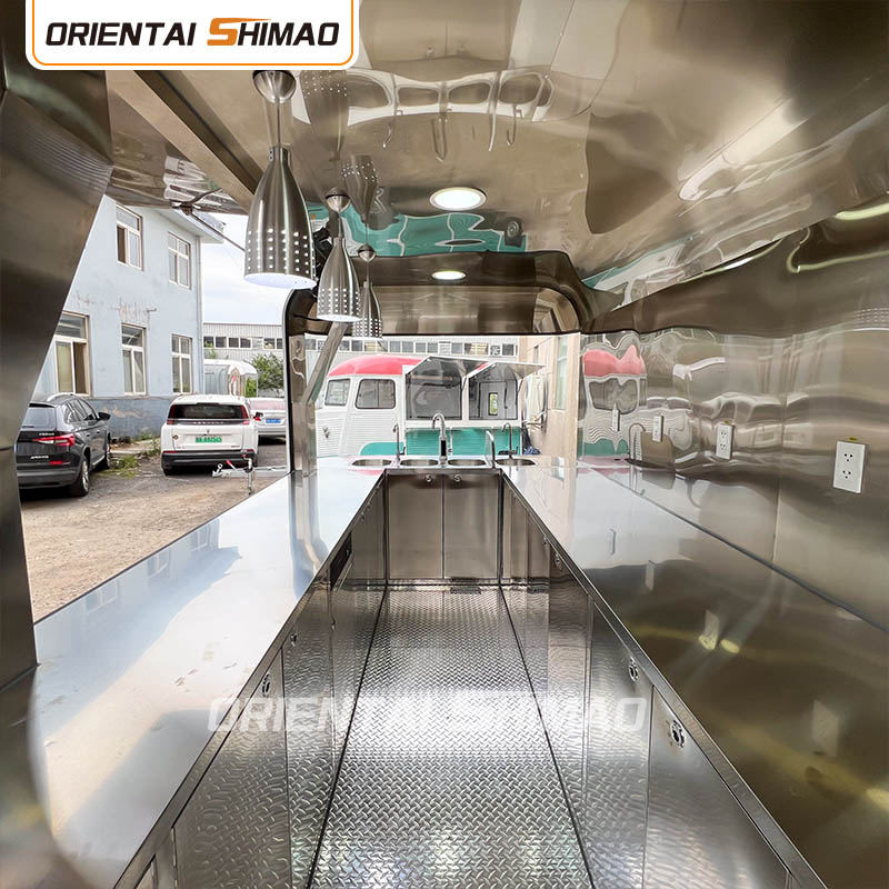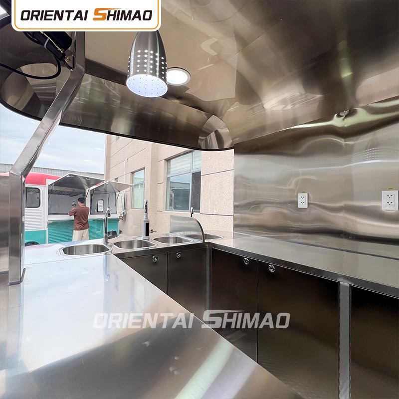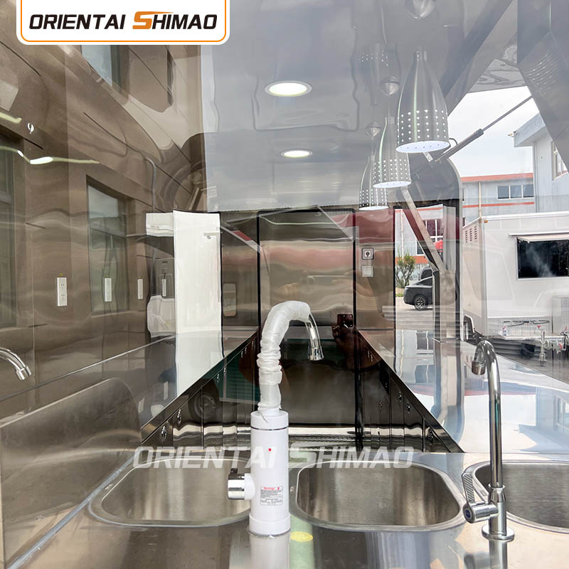 Stainless steel interior: The interior is made of stainless steel, ensuring a strong and durable interior that is easy to clean and maintain and meets food hygiene standards. The use of stainless steel not only improves the service life of the food truck, but also ensures the hygiene and safety of the food preparation process.