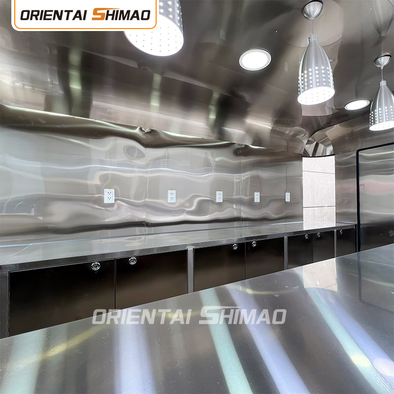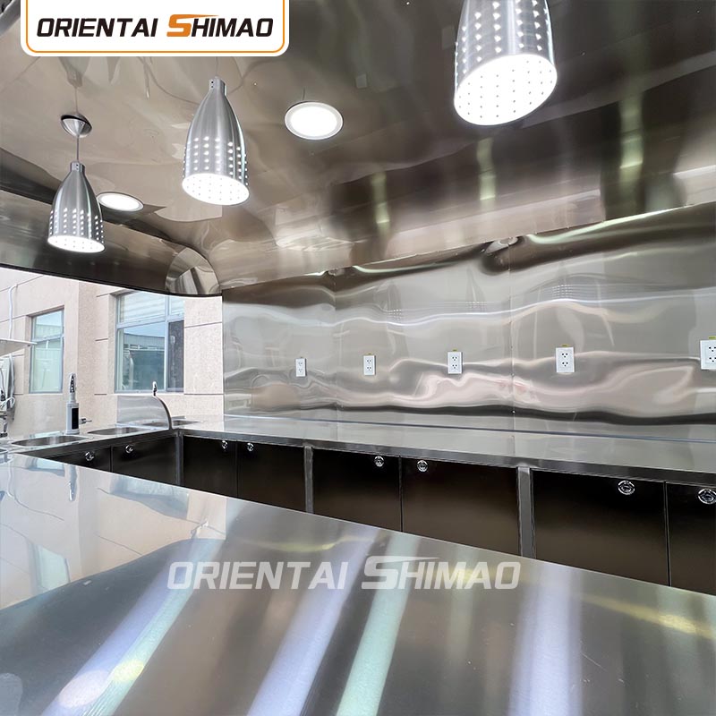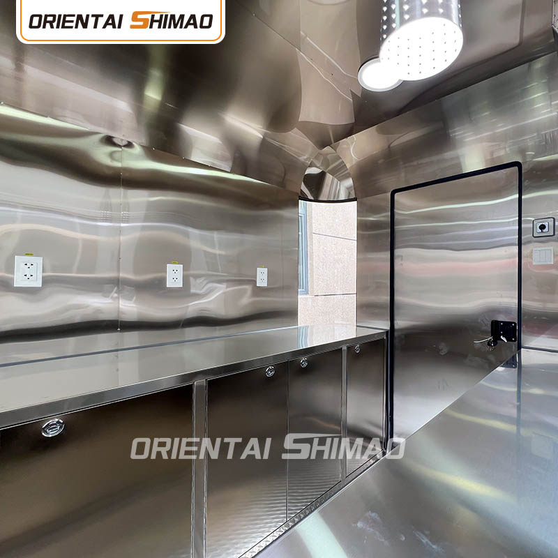 Golden stainless steel: the exterior of the food truck is made of high quality golden stainless steel. This material not only has excellent corrosion and abrasion resistance, but also the golden appearance increases the visual beauty and high-grade feeling, so that the food truck can stand out in various environments.