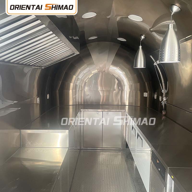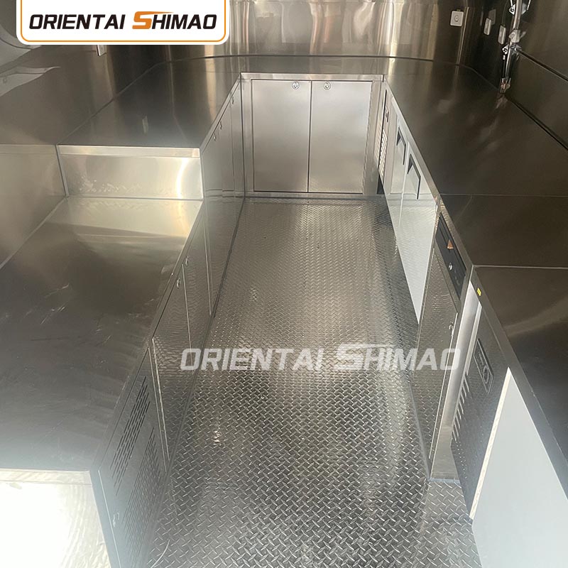 Stainless steel interior: The interior is made of stainless steel, ensuring a strong and durable interior that is easy to clean and maintain and meets food hygiene standards. The use of stainless steel not only improves the service life of the food truck, but also ensures the hygiene and safety of the food preparation process.