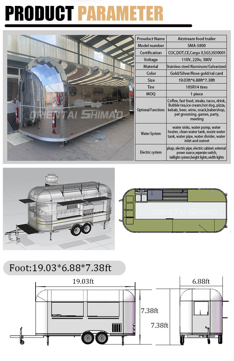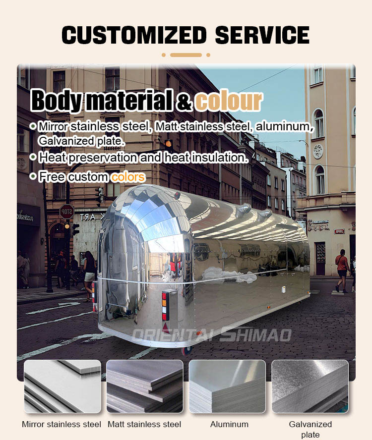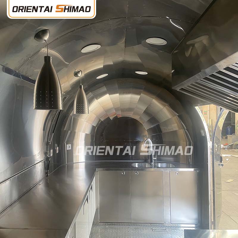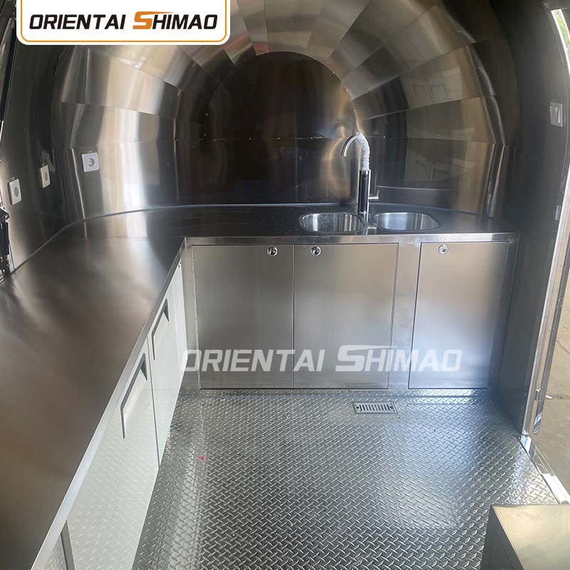 Golden stainless steel: the exterior of the food truck is made of high quality golden stainless steel. This material not only has excellent corrosion and abrasion resistance, but also the golden appearance increases the visual beauty and high-grade feeling, so that the food truck can stand out in various environments.
