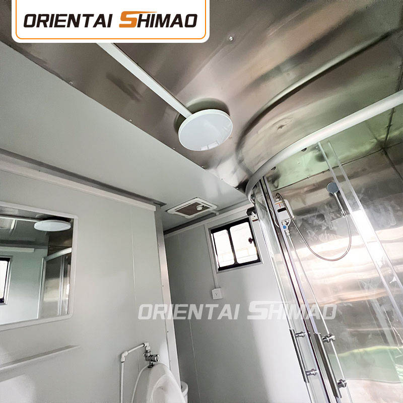 Interior materials: All facilities inside the car are made of environmentally friendly materials, in line with international hygiene standards. The walls are made of waterproof and anti-mould materials, which are easy to clean and maintain. The floor is made of non-slip PVC material, which is not only waterproof and non-slip, but also has good anti-bacterial properties to protect the safety of users.