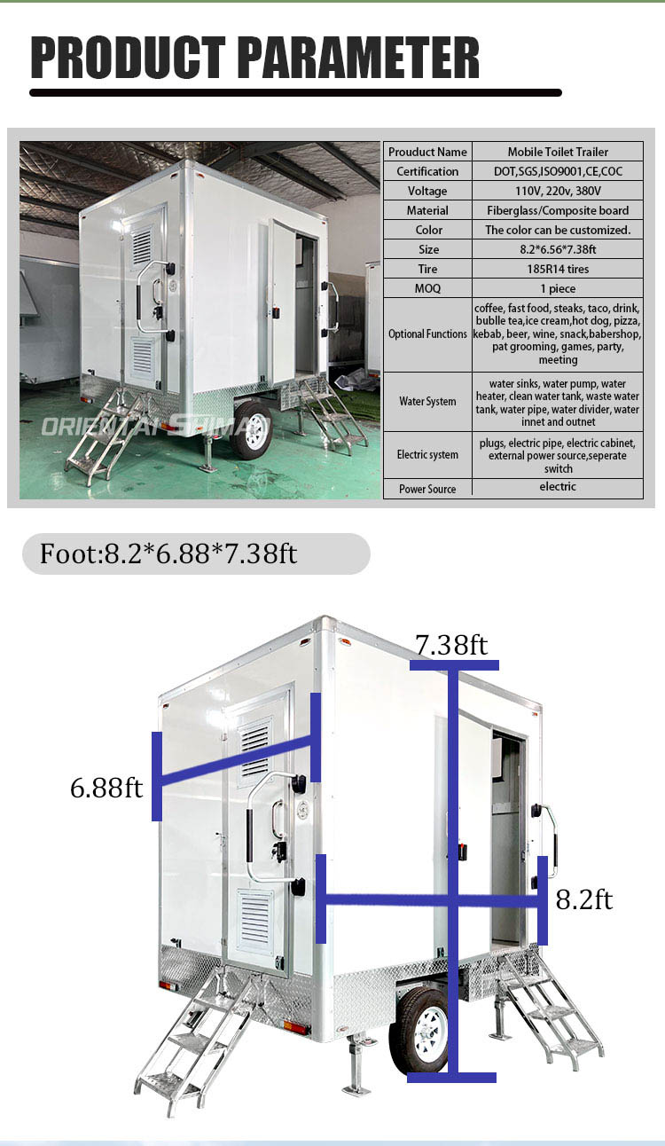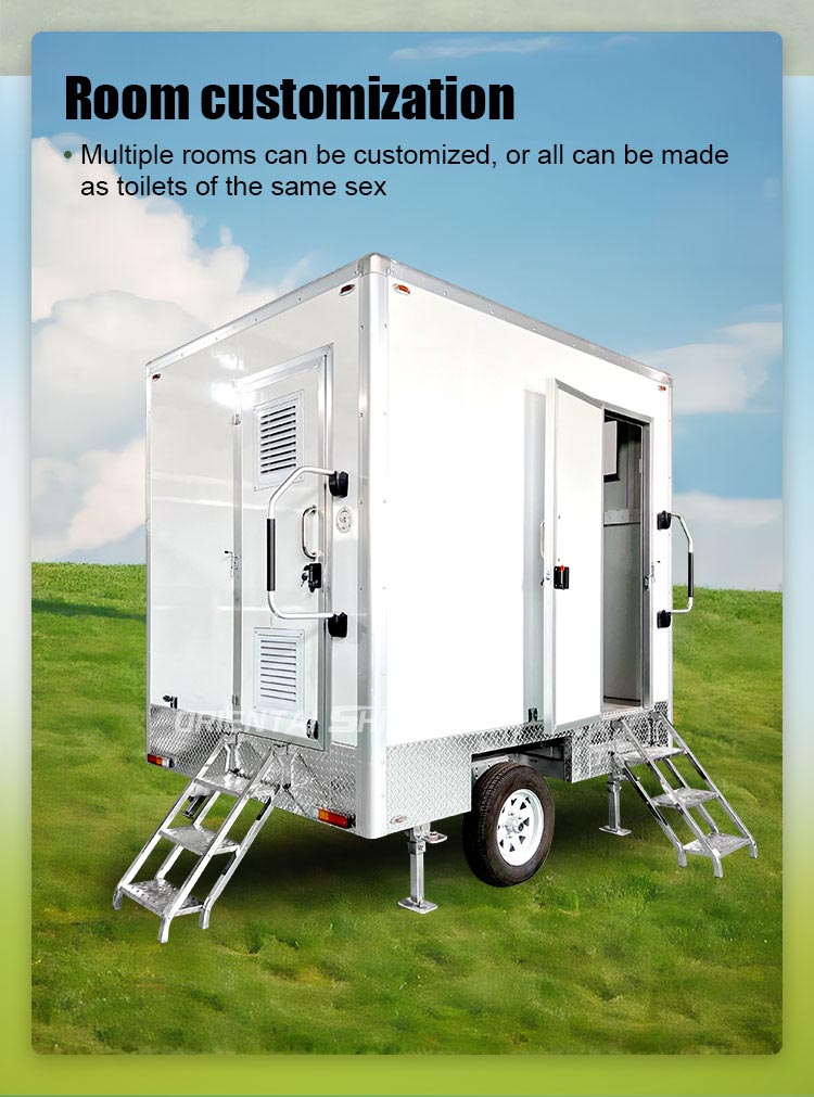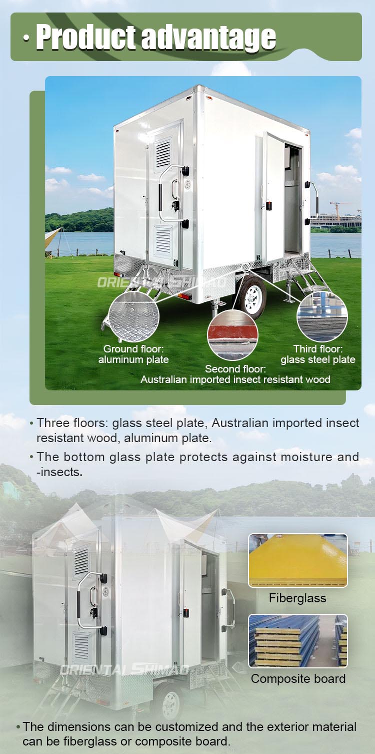 Oriental shimao Festival Portable Toilet for event is a portable toilet solution designed to meet high-end needs for all types of large-scale events, construction sites, outdoor camps and emergency rescue sites. Combining advanced environmental technology with user-friendly design, this sanitation vehicle provides a comfortable, safe and efficient toileting experience, making it the best choice for modern temporary sanitation facilities.