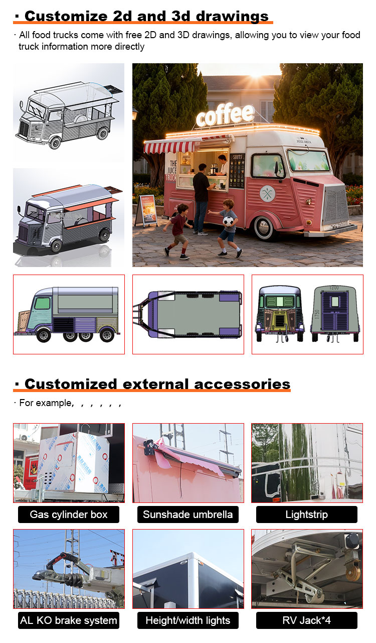 Versatility: In order to meet the needs of different catering scenarios, a variety of professional cooking and storage equipment is built into the vehicle, ranging from cooking utensils to storage space for ingredients, which can meet the needs of diversified and highly efficient catering operations, and greatly enhance the operational efficiency, whether it is for on-site cooking or fast food delivery.