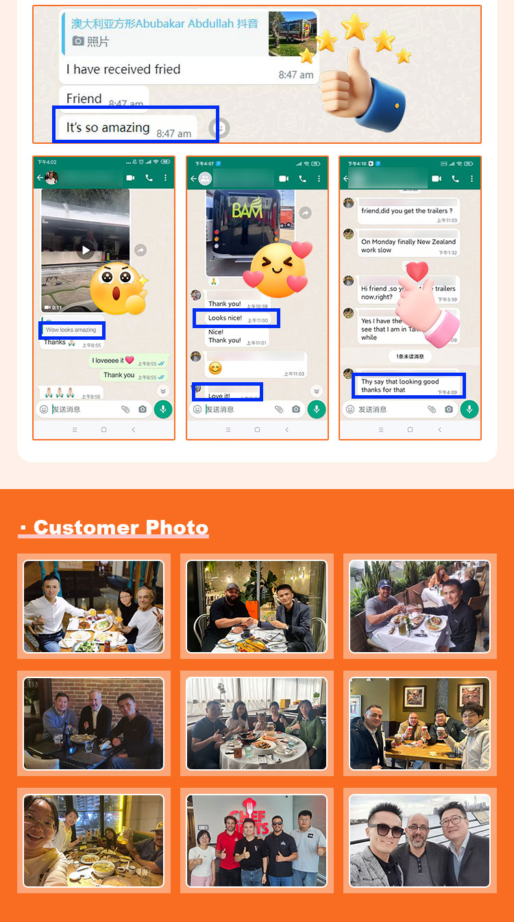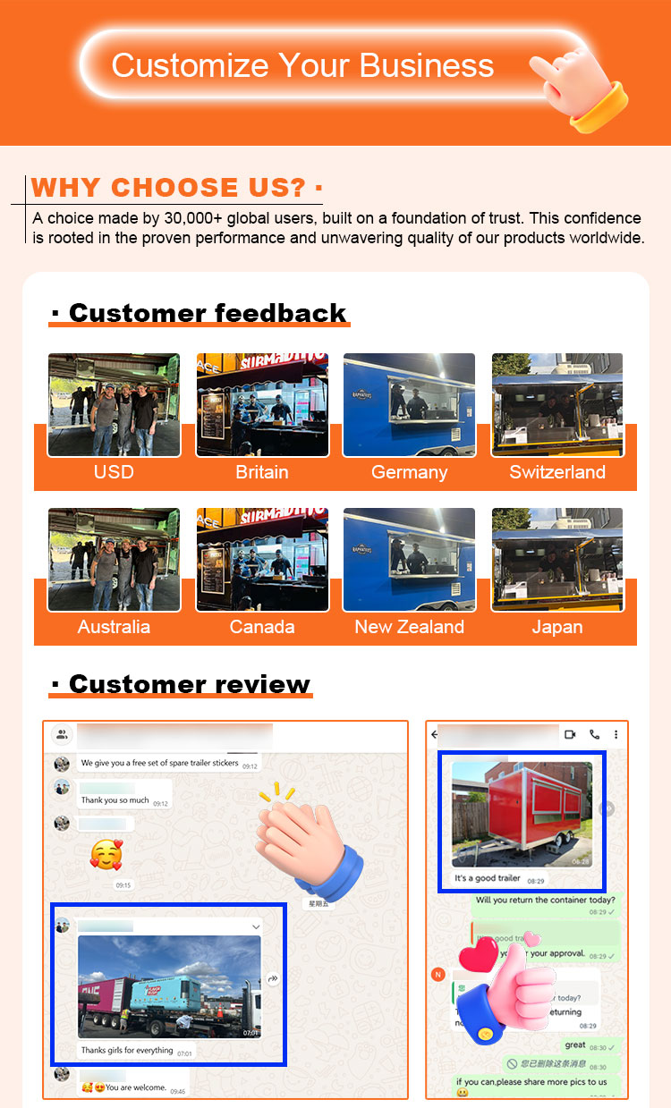 For the main material, we chose high-quality 304 stainless steel, which is known for its excellent corrosion resistance and excellent durability, and can maintain stable performance in a variety of environmental conditions, ensuring that our Trailer Food Truck products can maintain their excellent quality and functionality even in the long term and face a variety of challenges. 304 stainless steel's excellent resistance to corrosion, so that the Truck is not easy to be affected by oxidation or rust, which greatly extends its service life. The excellent corrosion resistance of 304 stainless steel makes the Truck less susceptible to oxidation or rust, greatly extending their service life.