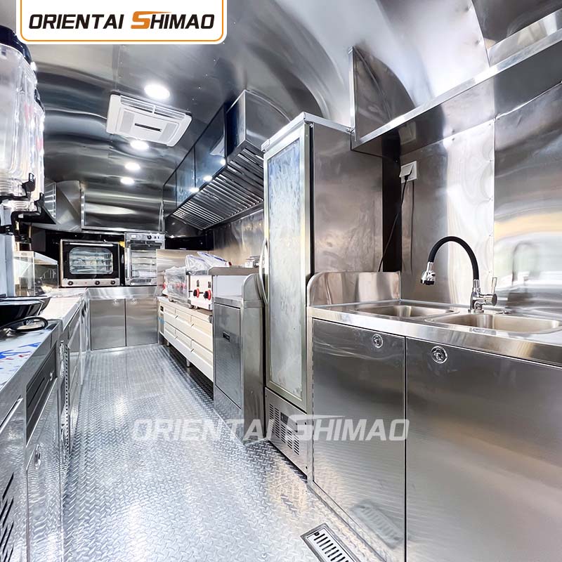 Stainless steel interior: The interior is made of stainless steel, ensuring a strong and durable interior that is easy to clean and maintain and meets food hygiene standards. The use of stainless steel not only improves the service life of the food truck, but also ensures the hygiene and safety of the food preparation process.