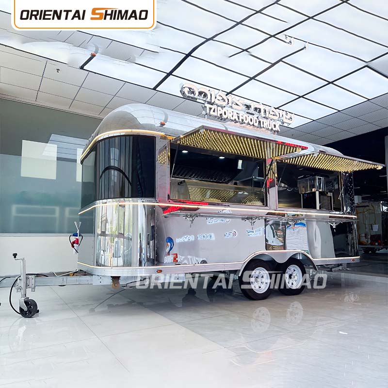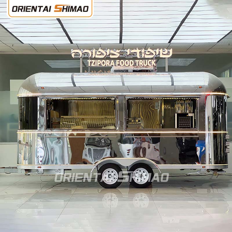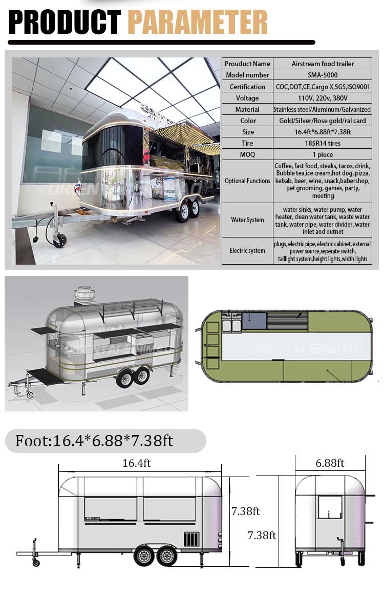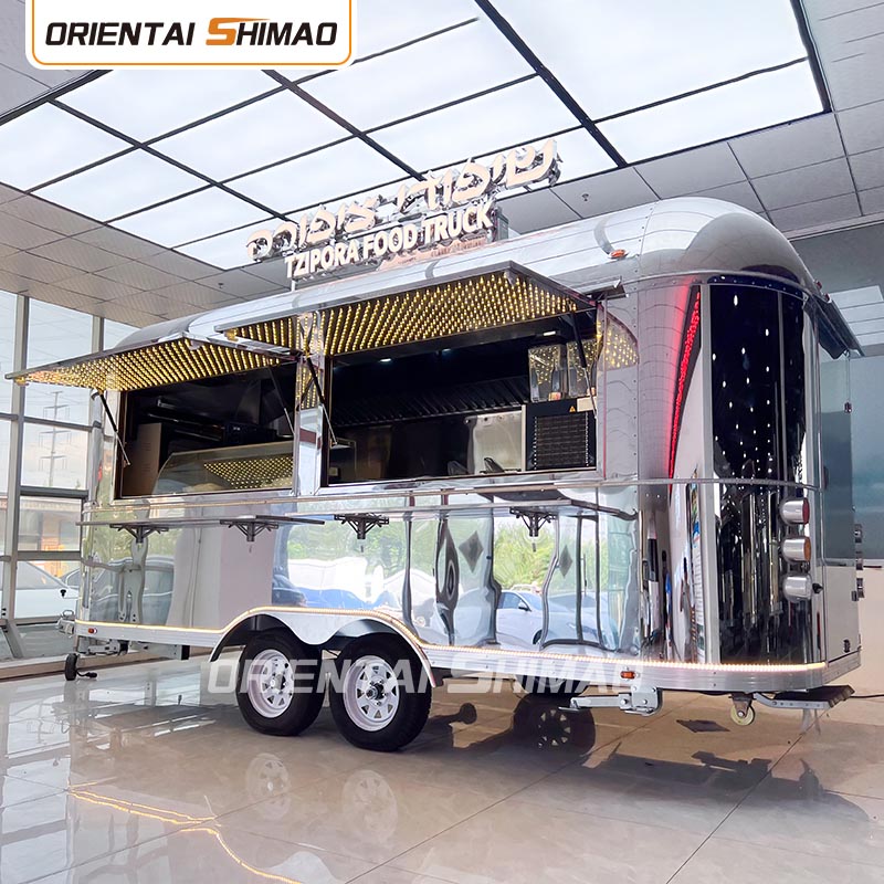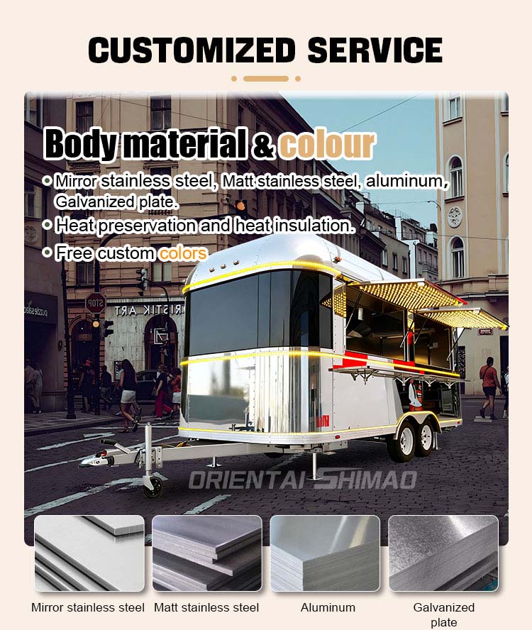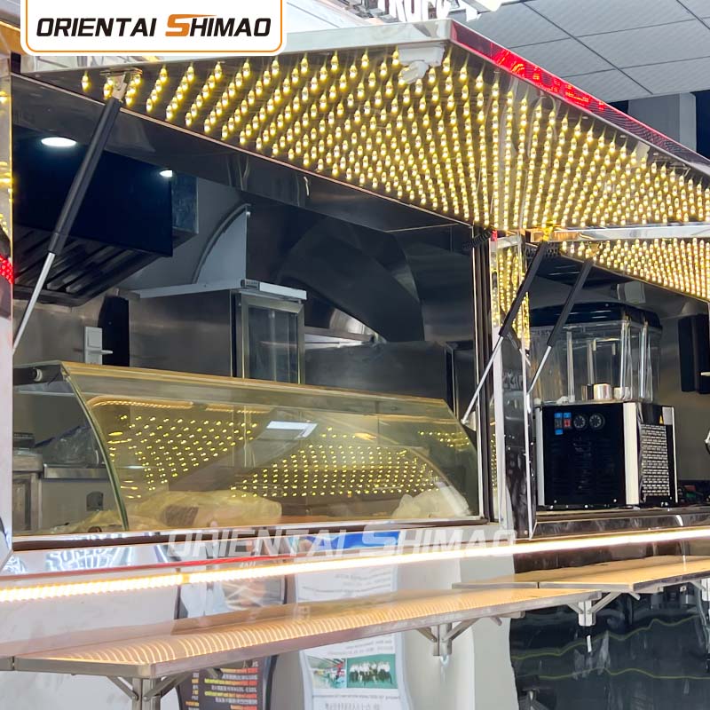 Golden stainless steel: the exterior of the food truck is made of high quality golden stainless steel. This material not only has excellent corrosion and abrasion resistance, but also the golden appearance increases the visual beauty and high-grade feeling, so that the food truck can stand out in various environments.