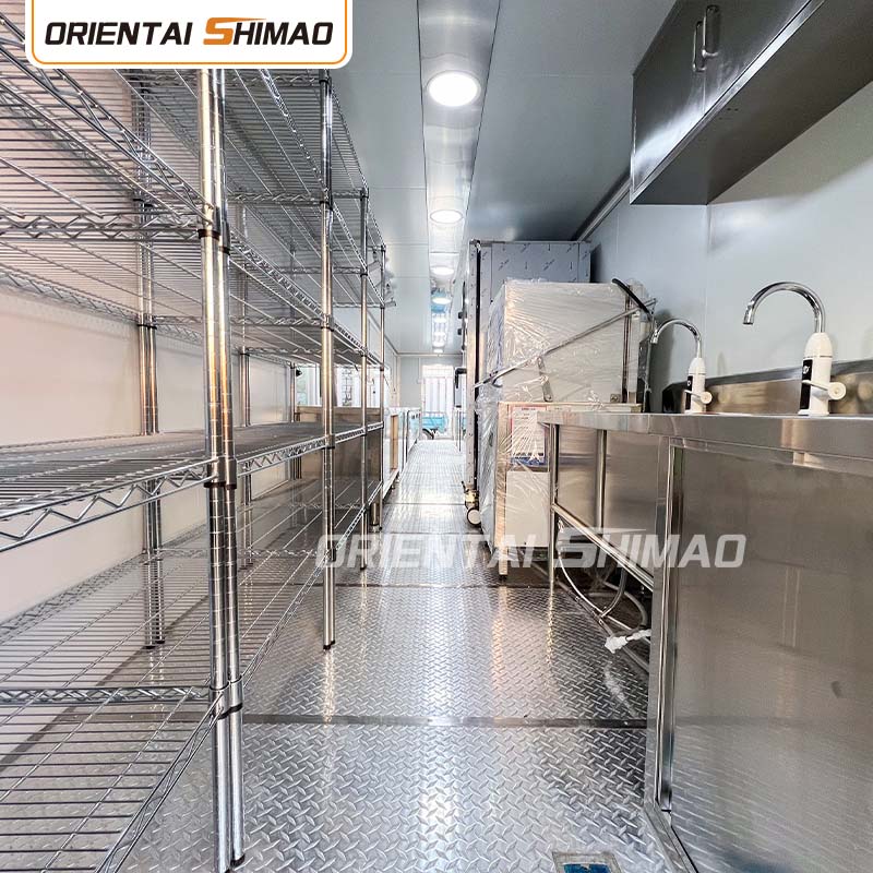 Interior Layout: Reasonable planning of the kitchen, dining room, storage area and other areas to ensure the maximum use of space. At the same time, different functional areas are set up according to business needs, such as production area, heating area, selling area, etc., to facilitate operation and improve operational efficiency.