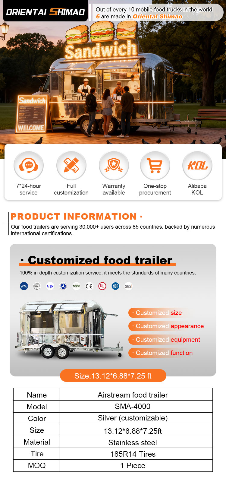 For the main material, we chose high-quality 304 stainless steel, which is known for its excellent corrosion resistance and excellent durability, and can maintain stable performance in a variety of environmental conditions, ensuring that our Ice Cream Carts products can maintain their excellent quality and functionality even in the long term and face a variety of challenges. 304 stainless steel's excellent resistance to corrosion, so that the Truck is not easy to be affected by oxidation or rust, which greatly extends its service life. The excellent corrosion resistance of 304 stainless steel makes the Truck less susceptible to oxidation or rust, greatly extending their service life.