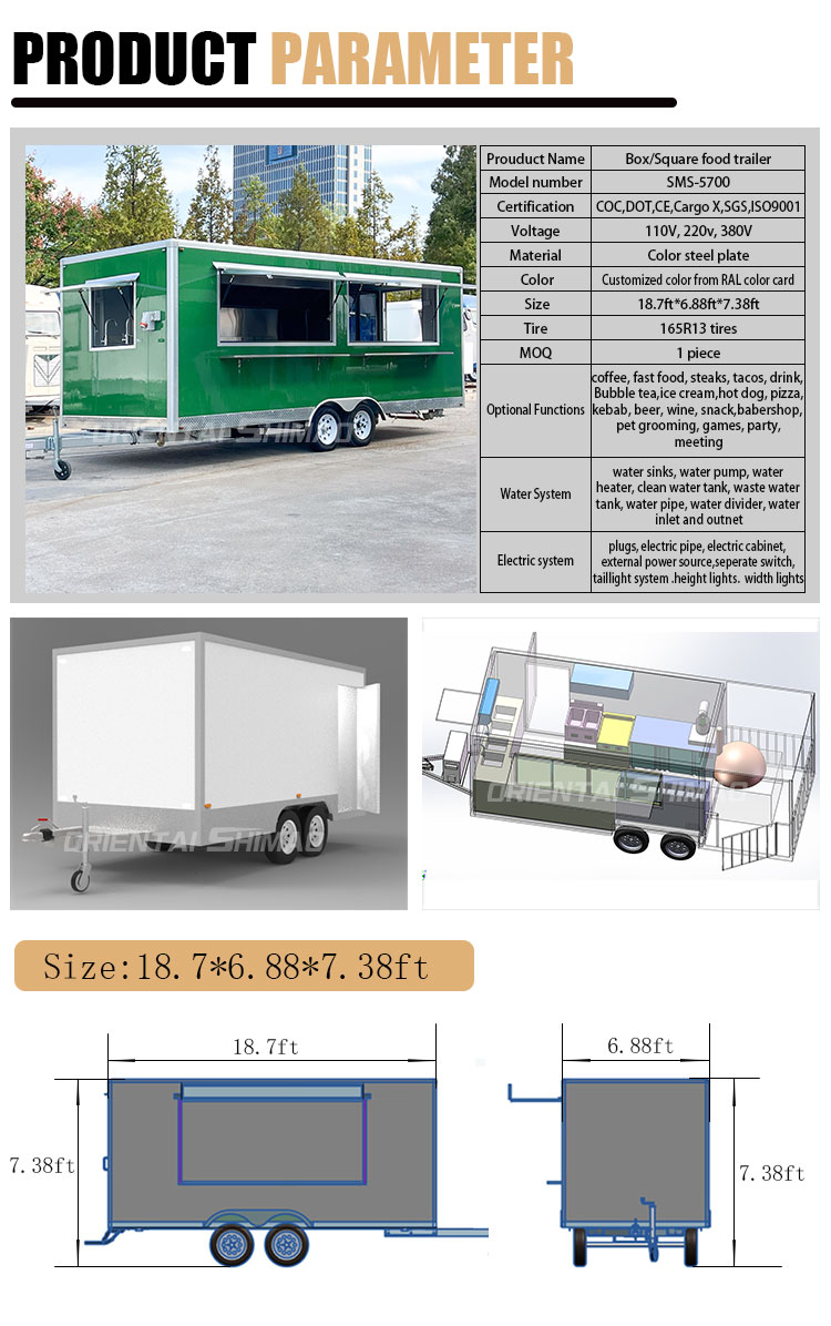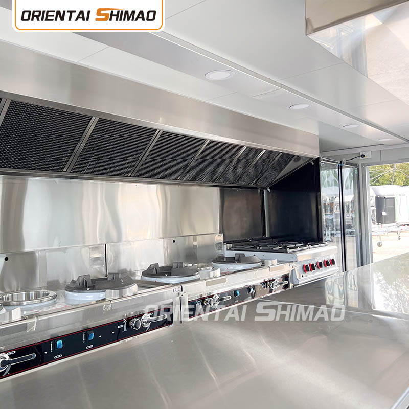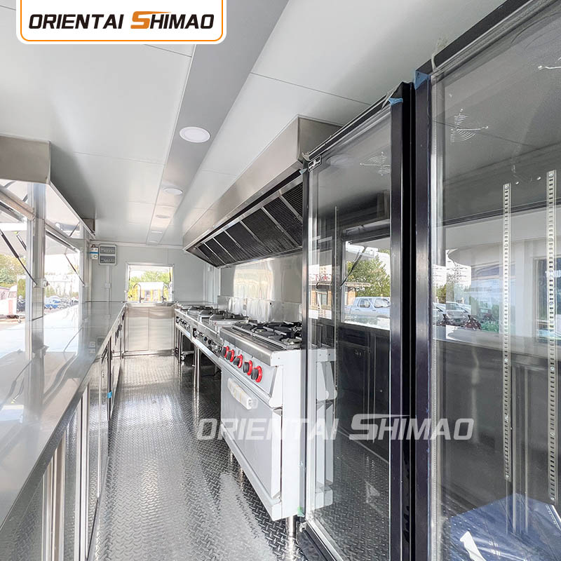 Interior Layout: Reasonable planning of the kitchen, dining room, storage area and other areas to ensure the maximum use of space. At the same time, different functional areas are set up according to business needs, such as production area, heating area, selling area, etc., to facilitate operation and improve operational efficiency.
