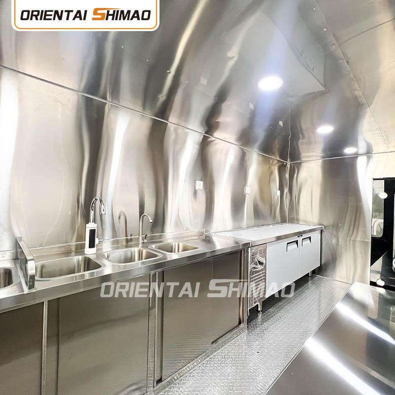 Stainless steel interior: The interior is made of stainless steel, ensuring a strong and durable interior that is easy to clean and maintain and meets food hygiene standards. The use of stainless steel not only improves the service life of the food truck, but also ensures the hygiene and safety of the food preparation process.