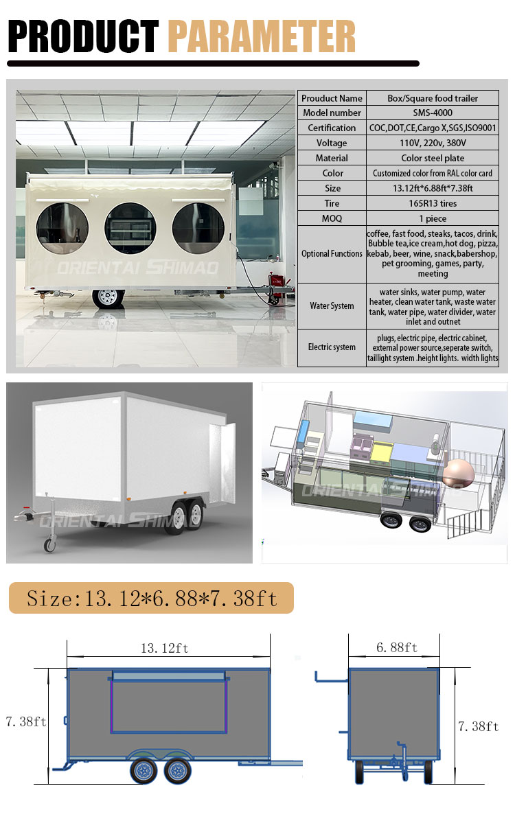 Square Food Vending Trailer for sale material introduction