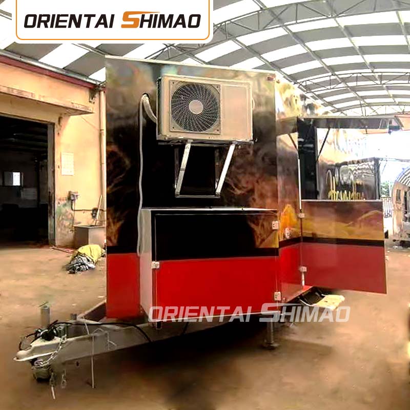 Golden stainless steel: the exterior of the food truck is made of high quality golden stainless steel. This material not only has excellent corrosion and abrasion resistance, but also the golden appearance increases the visual beauty and high-grade feeling, so that the food truck can stand out in various environments.