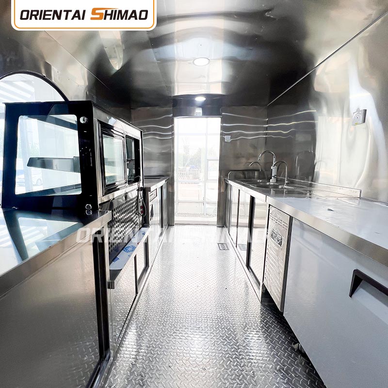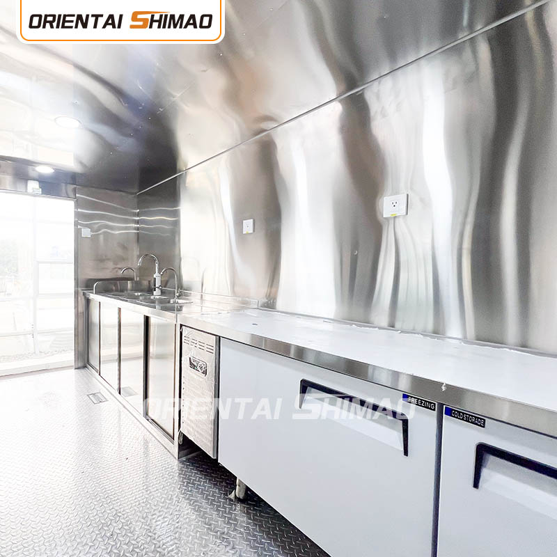 Stainless steel interior: The interior is made of stainless steel, ensuring a strong and durable interior that is easy to clean and maintain and meets food hygiene standards. The use of stainless steel not only improves the service life of the food truck, but also ensures the hygiene and safety of the food preparation process.
