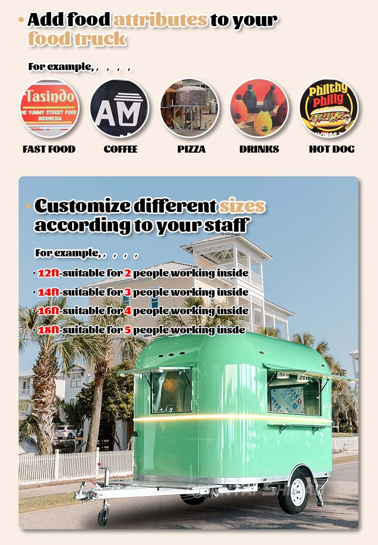For the main material, we chose high-quality 304 stainless steel, which is known for its excellent corrosion resistance and excellent durability, and can maintain stable performance in a variety of environmental conditions, ensuring that our Taco Concession Food Truck products can maintain their excellent quality and functionality even in the long term and face a variety of challenges. 304 stainless steel's excellent resistance to corrosion, so that the Truck is not easy to be affected by oxidation or rust, which greatly extends its service life. The excellent corrosion resistance of 304 stainless steel makes the Truck less susceptible to oxidation or rust, greatly extending their service life.