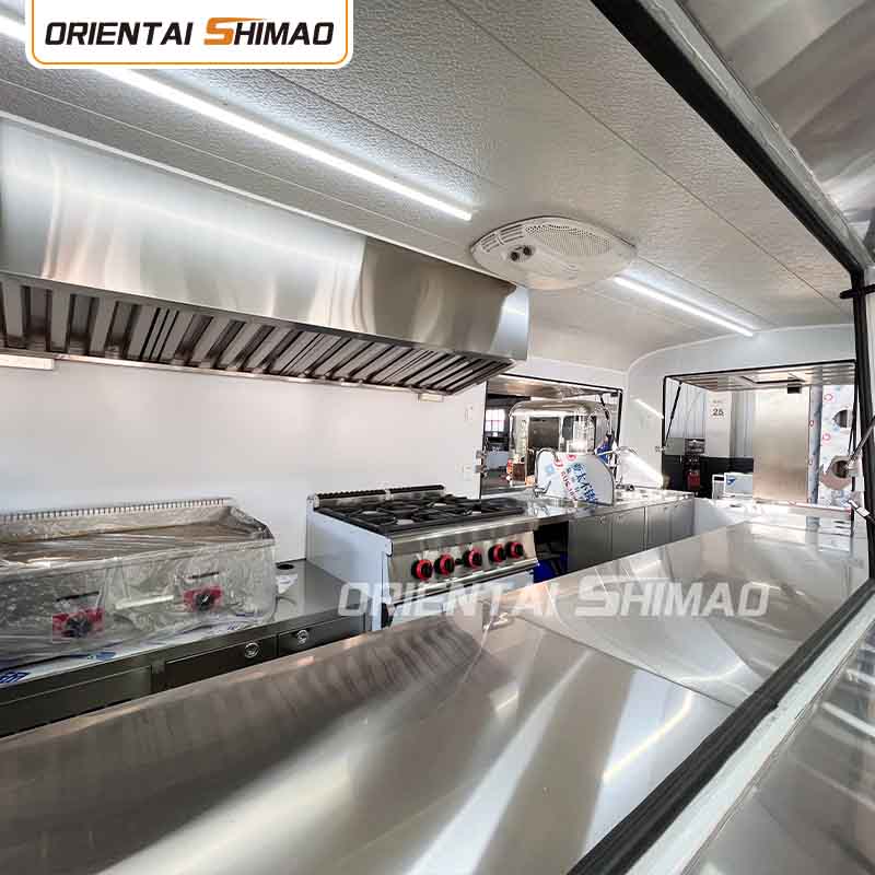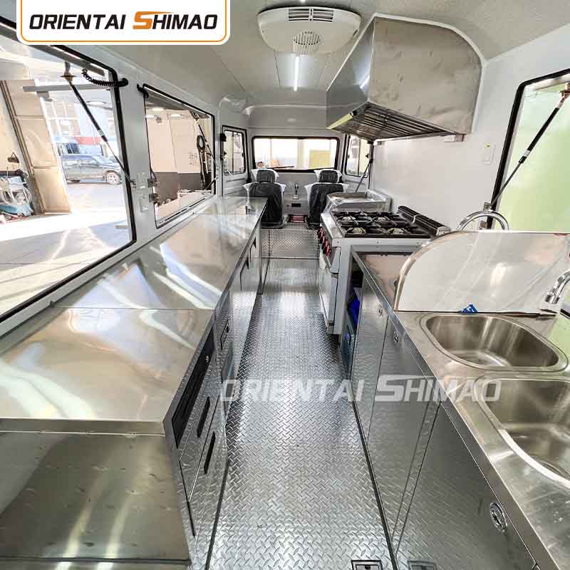 Stainless steel interior: The interior is made of stainless steel, ensuring a strong and durable interior that is easy to clean and maintain and meets food hygiene standards. The use of stainless steel not only improves the service life of the food truck, but also ensures the hygiene and safety of the food preparation process.