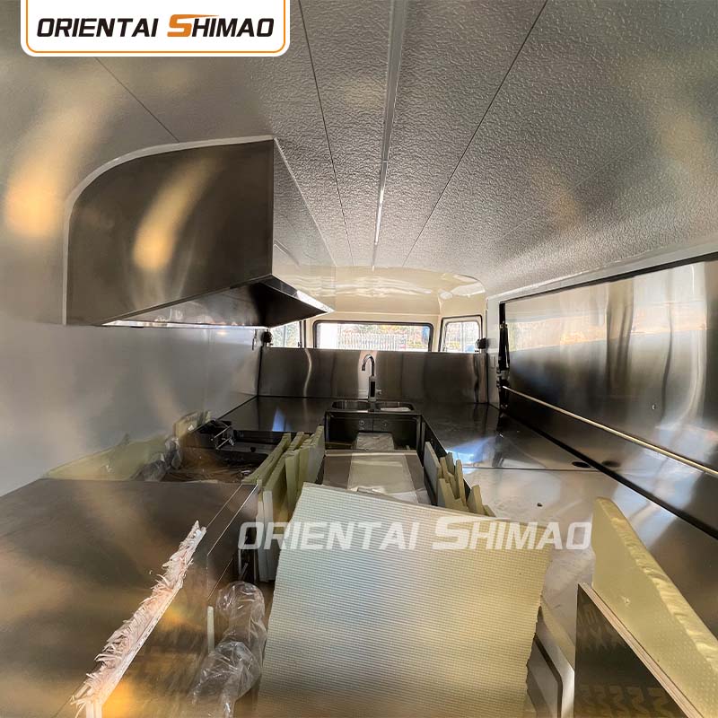 Stainless steel interior: The interior is made of stainless steel, ensuring a strong and durable interior that is easy to clean and maintain and meets food hygiene standards. The use of stainless steel not only improves the service life of the food truck, but also ensures the hygiene and safety of the food preparation process.
